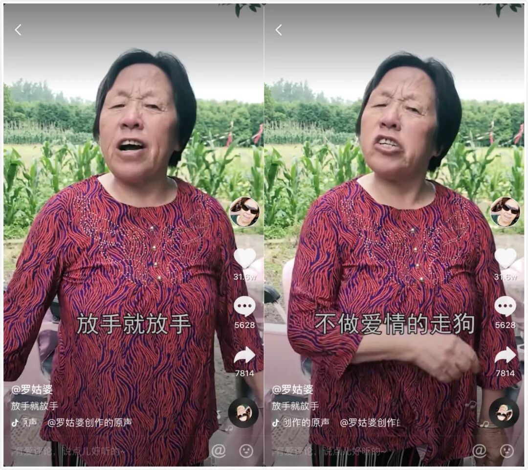 这类账号是以记录生活为主,视频内容没有固定的模式,可能是搞笑的生活日常,也可能是模仿热梗,还可能是小剧场,展现出老年人可爱调皮的一面。